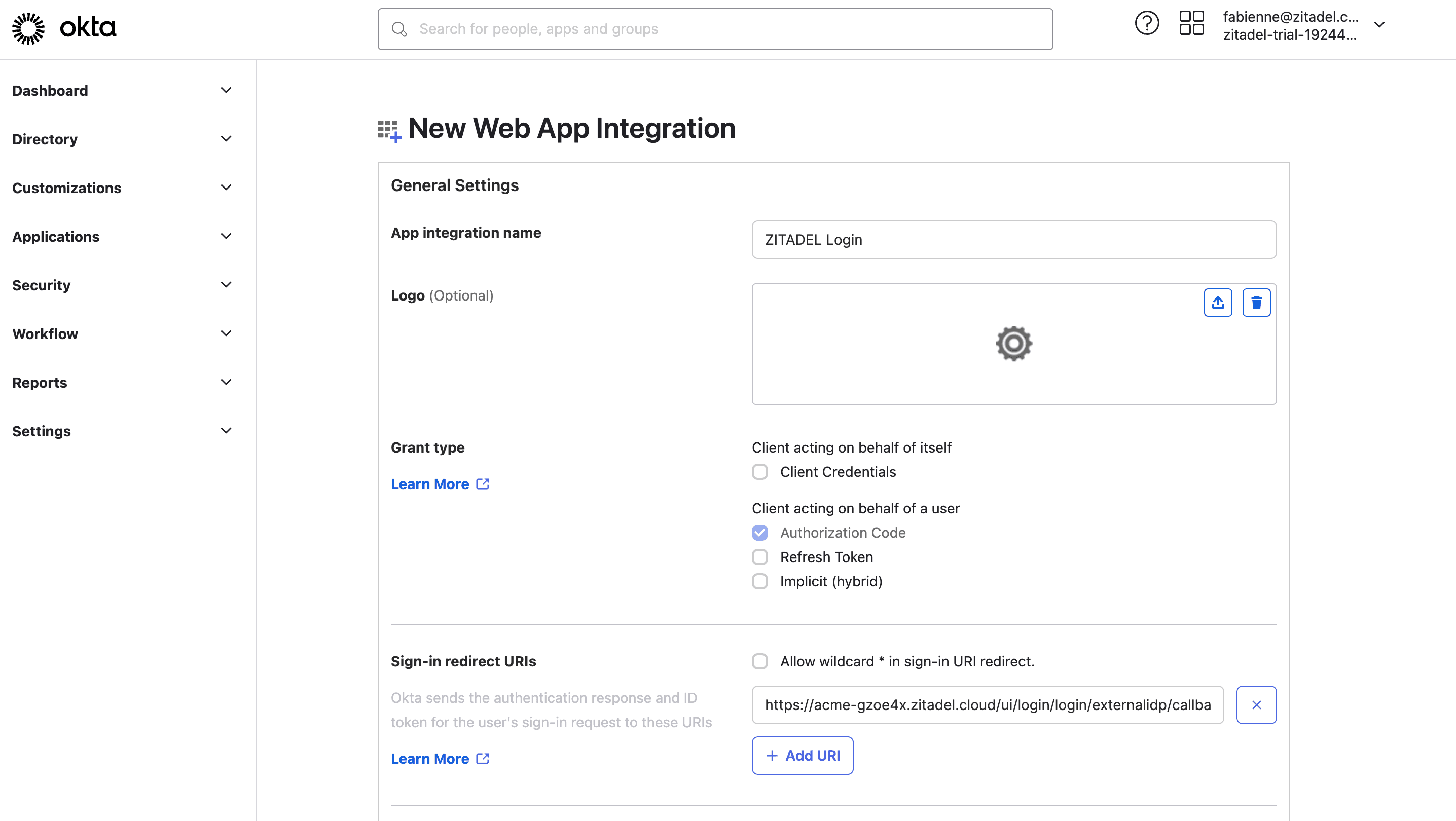 Click on the ZITADEL Callback URL to copy it to your clipboard. You will have to paste it in the OKTA application later.