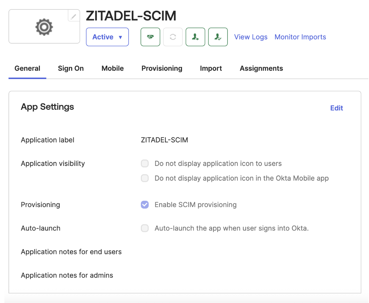 This guide provides step-by-step instructions to configure SCIM provisioning from Okta into ZITADEL.