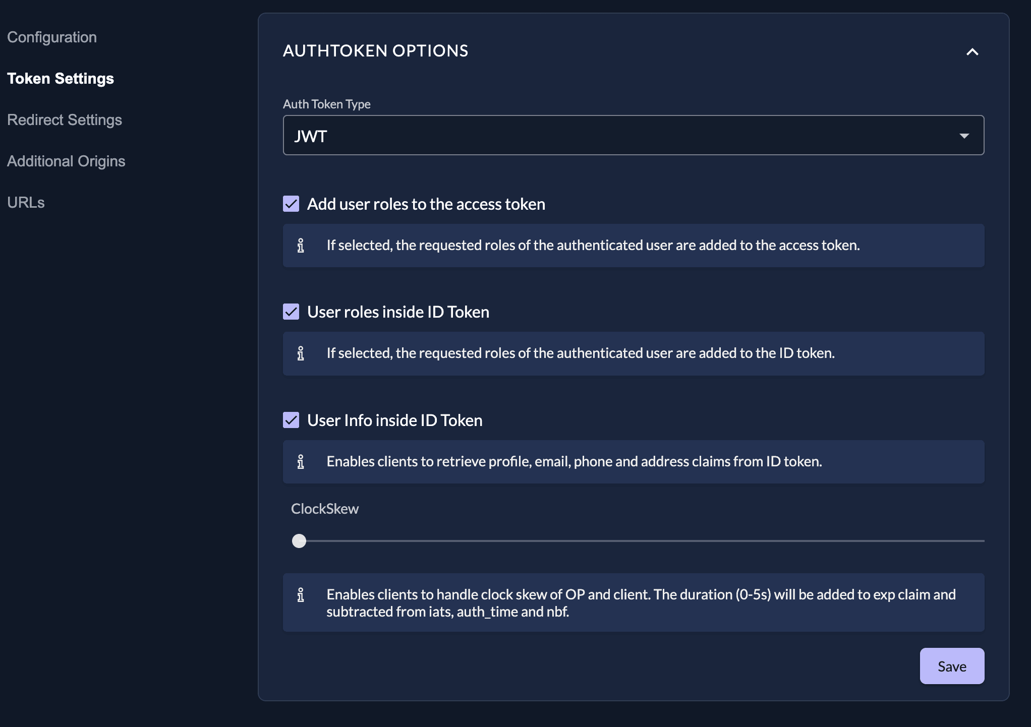 - User roles inside ID Token: enabled