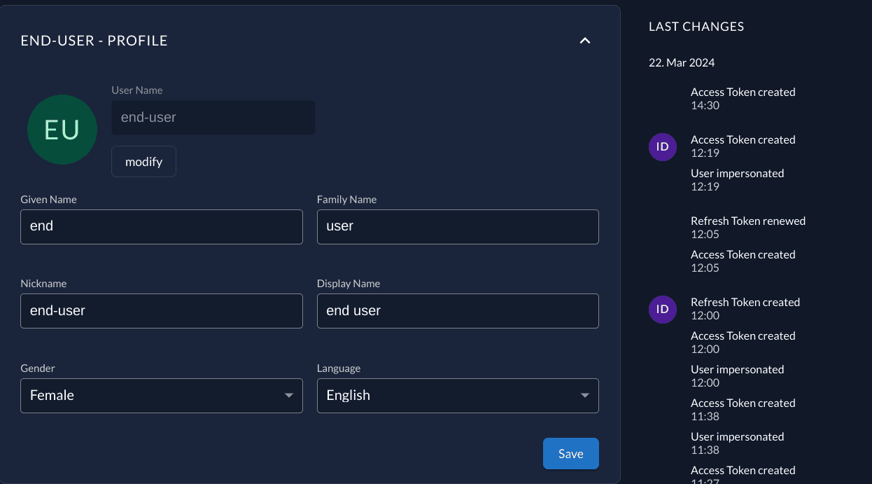 In the user view of the management console, we can see whenever a new access token is created for a user.