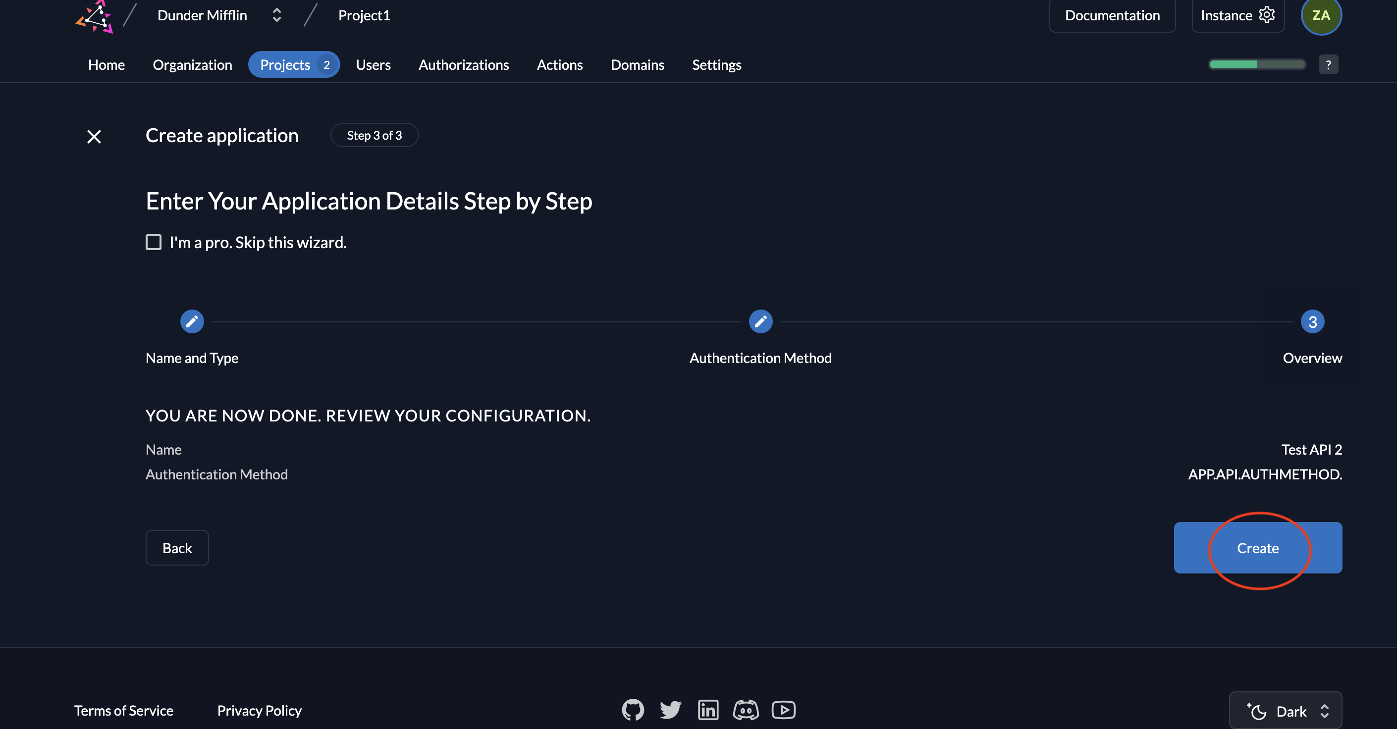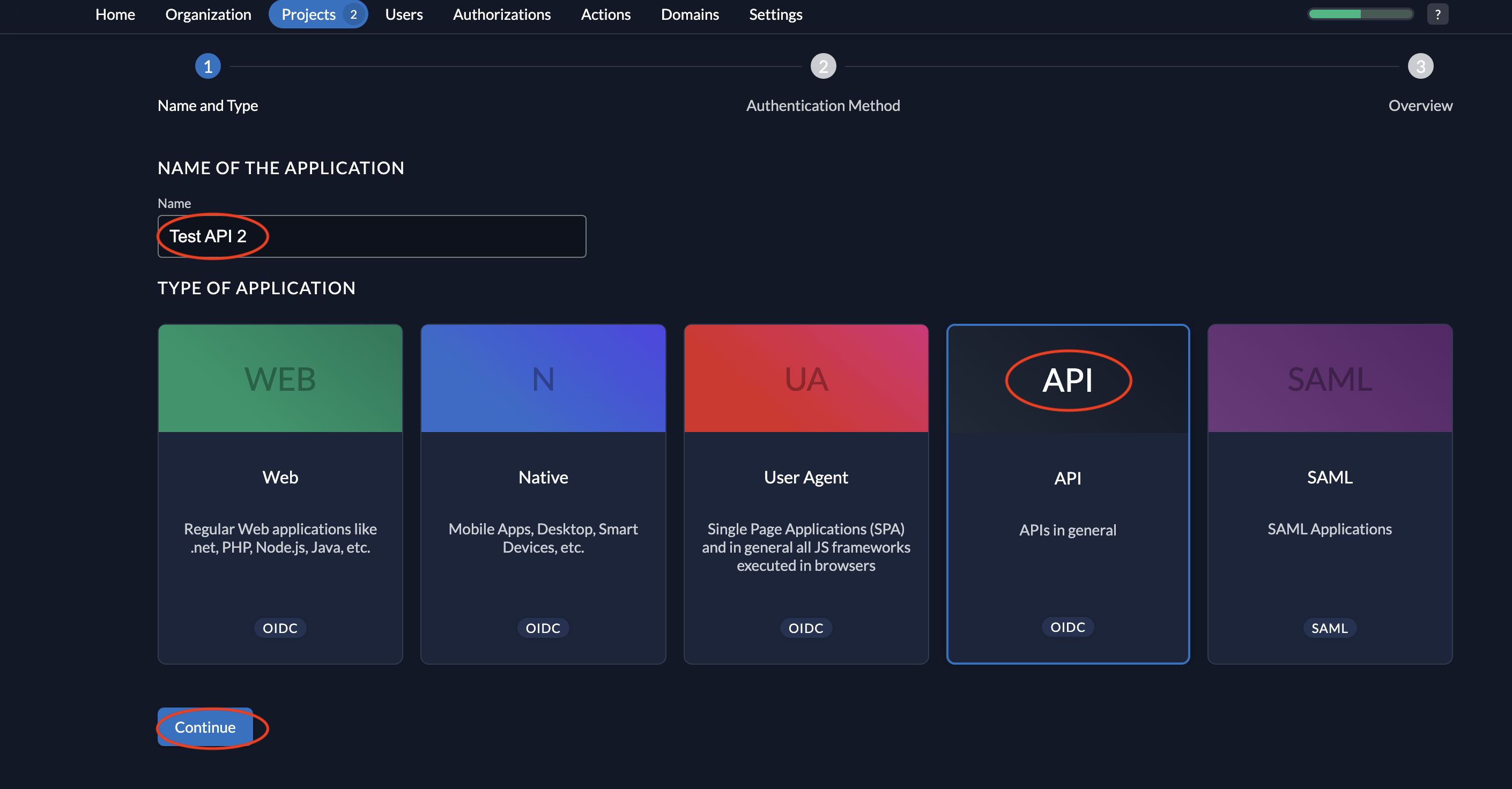 - Give a name to your application (Test API 2 is the name given below) and select type API.