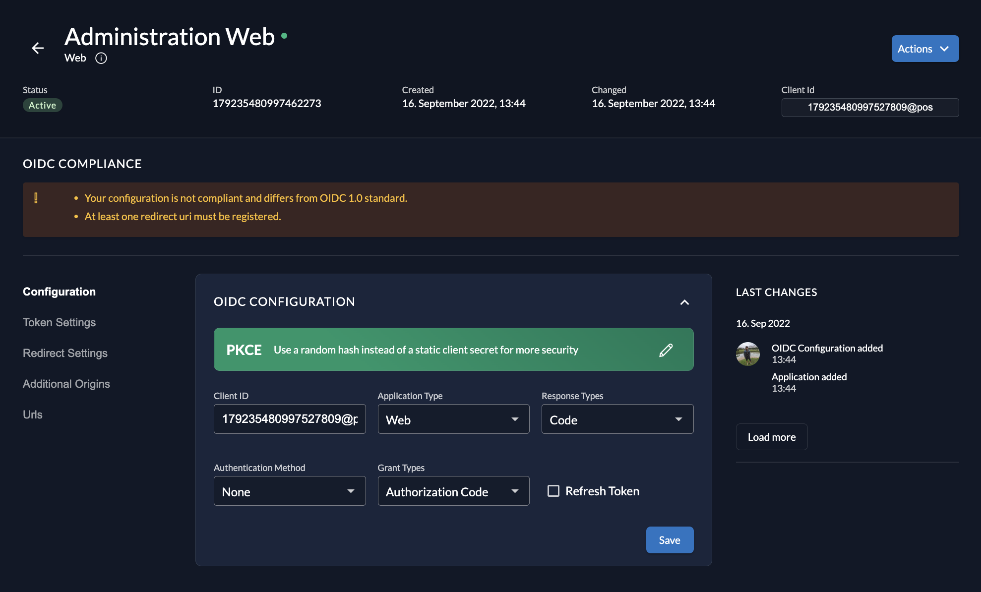- OIDC Compliance: The Management Console checks if your settings are OIDC compliant and shows tasks for completion if anything is missing.