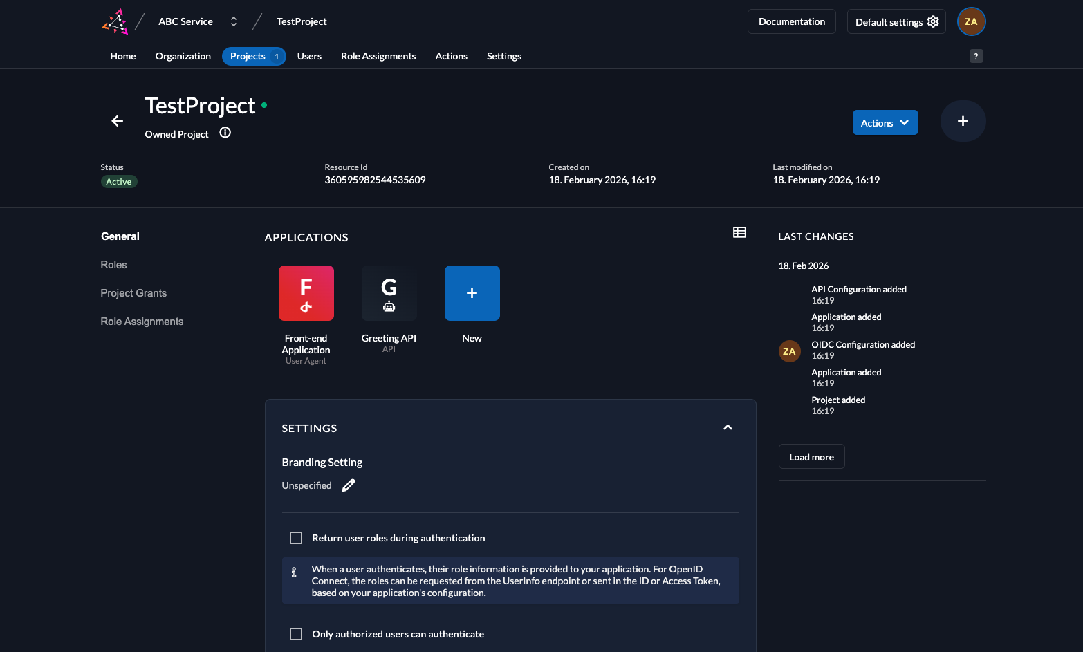 You can create the front-end application (User Agent) and the API in the same project or in a different project. In this example, we have created both in one. Configure the applications with appropriate settings (as instructed).